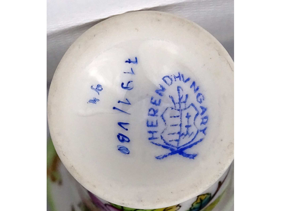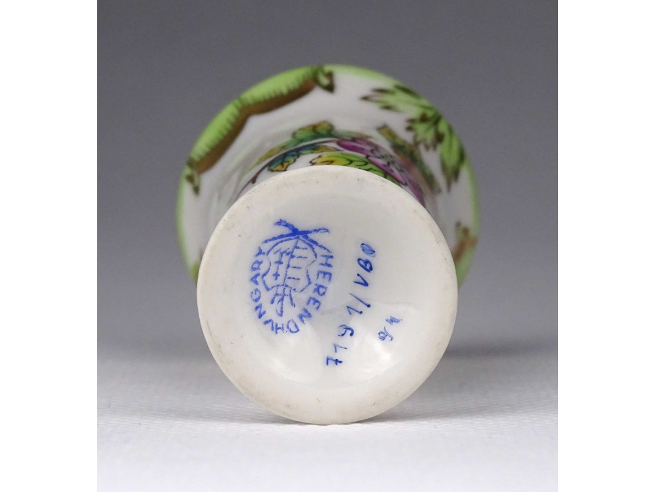 Régi Viktória mintás Herendi porcelán kis váza ibolyaváza 6.2 cm