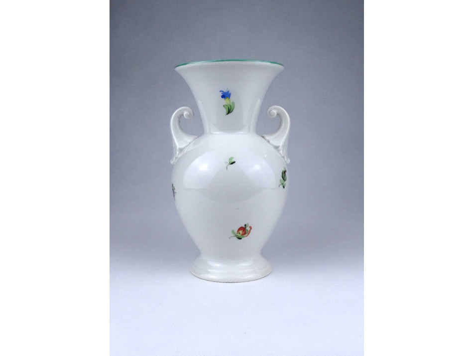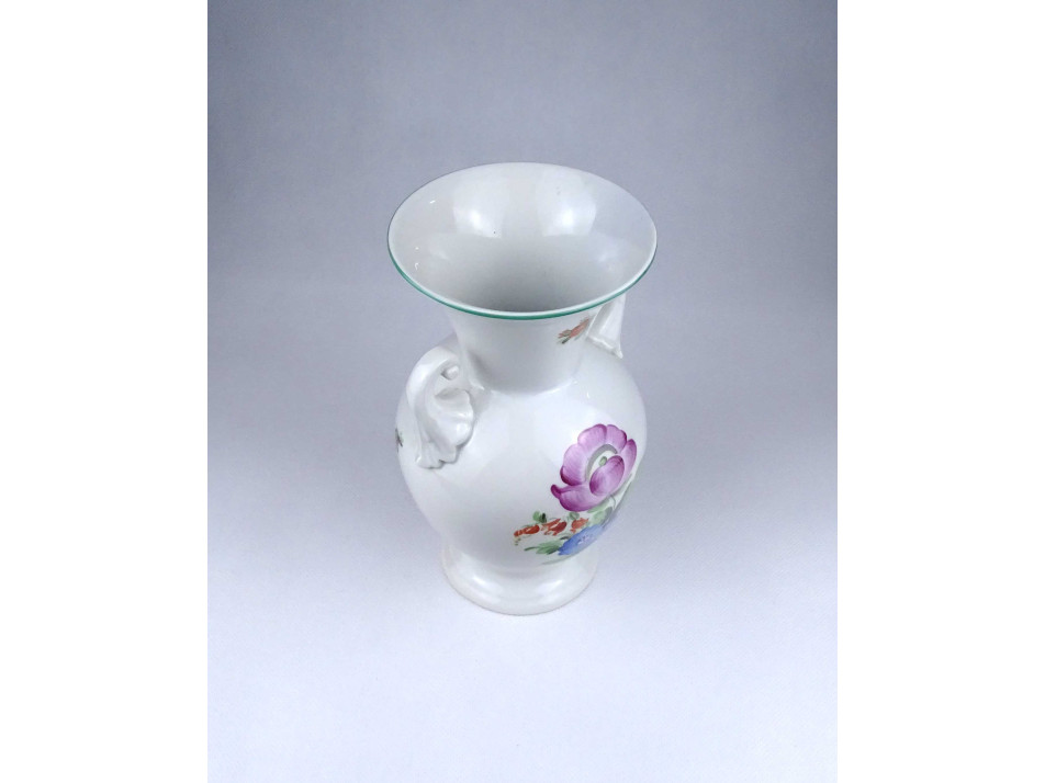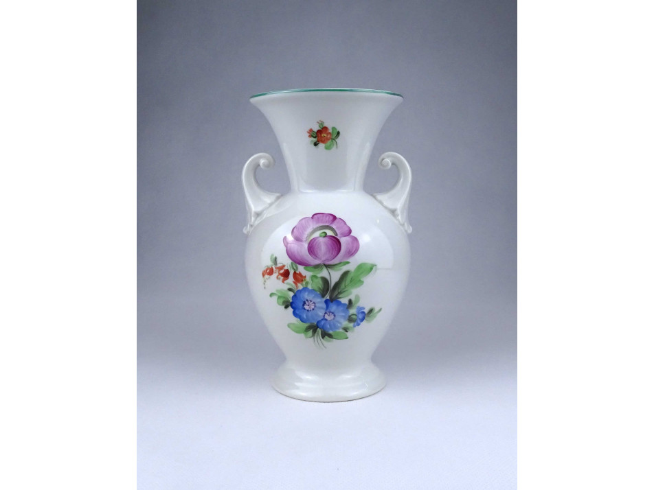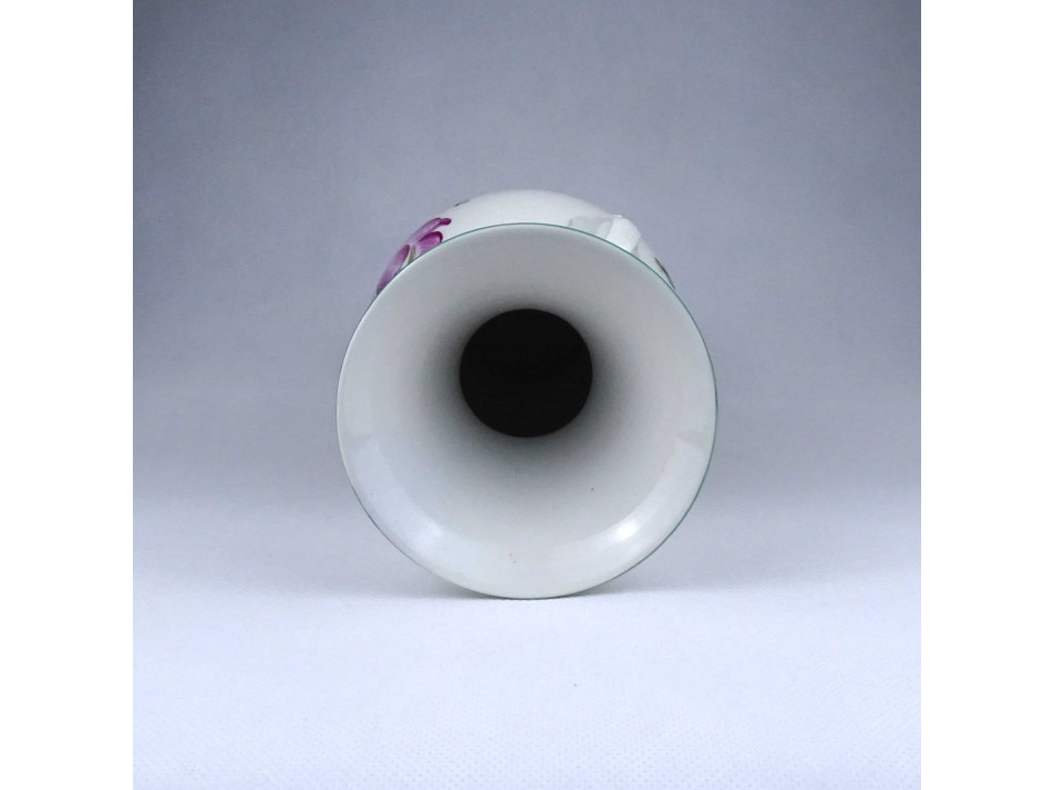 Antik kézzel festett jelzésű, szép állapotú, virágmintás Herendi porcelán váza. A váza felső pereme restaurátor által szakszerűen javított.