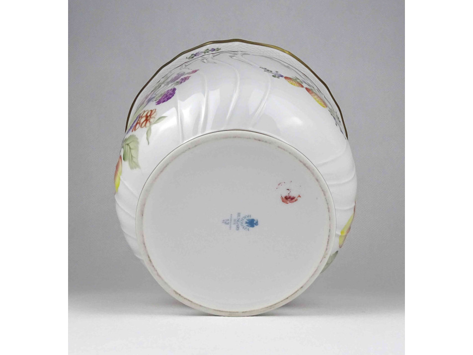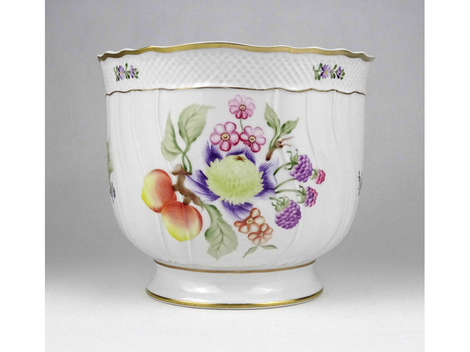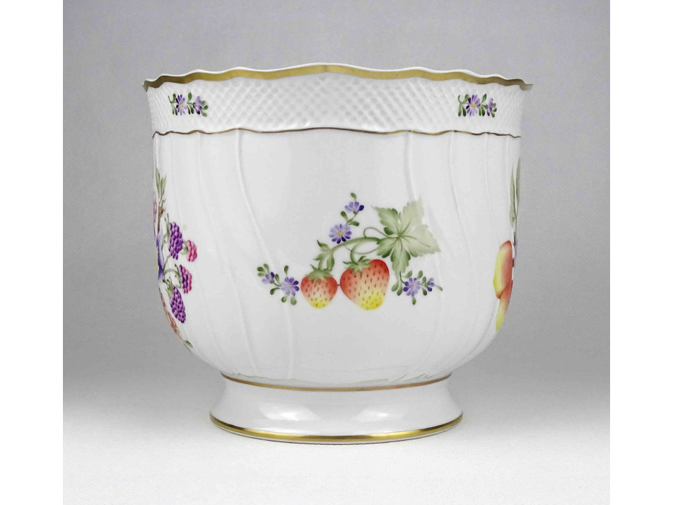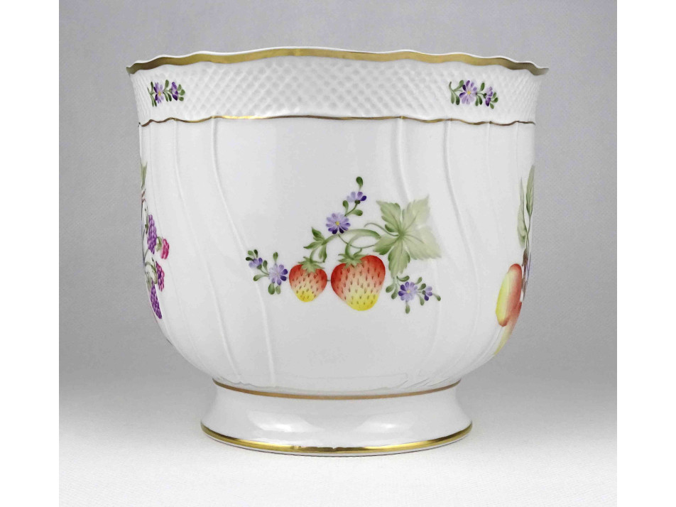 Gyümölcsmintás Hollóházi porcelán kaspó 14 cm