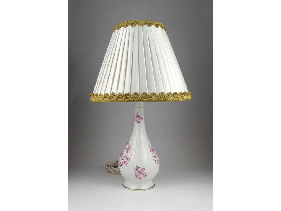 Rózsaszín virág mintás Hollóházi porcelán asztali lámpa 41 cm