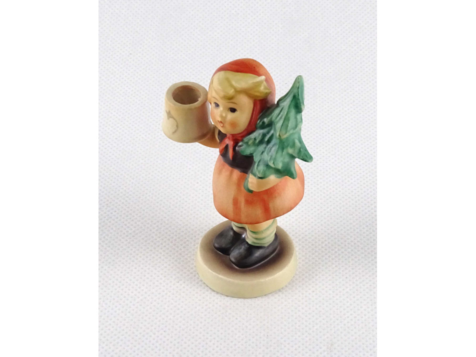 Régi gyertyatartós Hummel figura kislány fenyőfával 8.6 cm