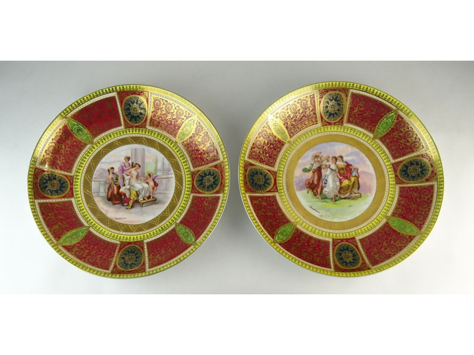Antik nagy méretű Altwien dísztál pár 34 cm
