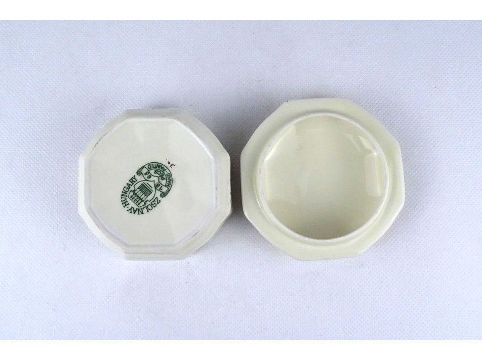 Vajszínű virágmintás nyolcszögletű Zsolnay porcelán bonbonier 9 cm