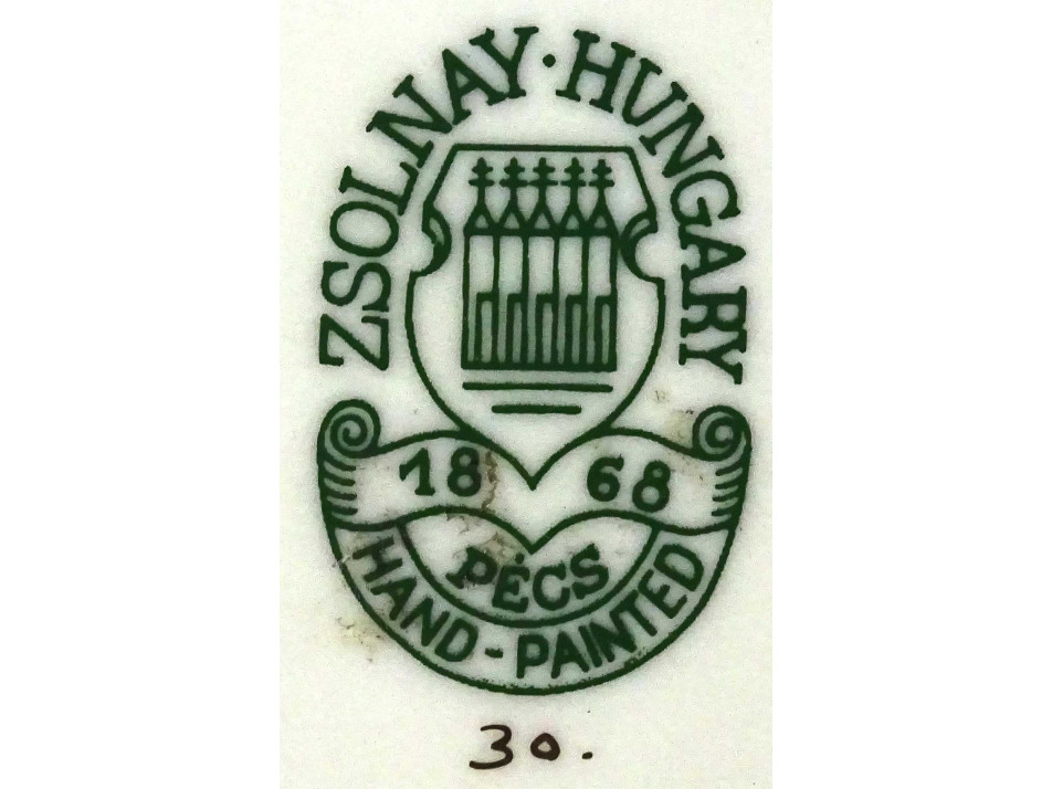 Alján zöld Zsolnay öttornyú márkajelzés: