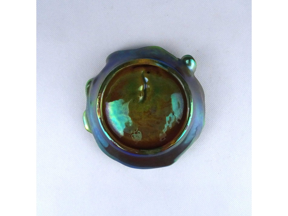 Régi zöld eozin mázas Zsolnay porcelán rákos tál 15 cm