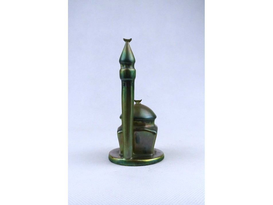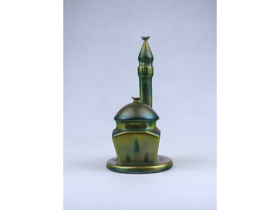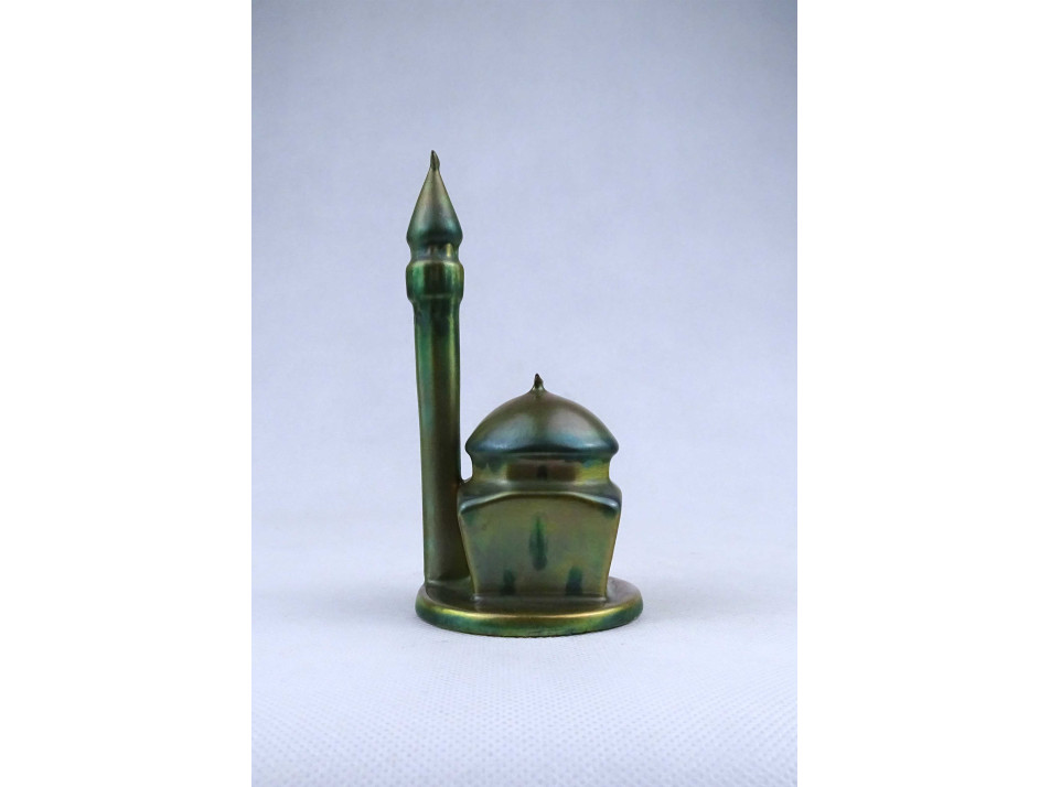 Hibátlan állapotú, jelzett zöld eozin mázas Zsolnay porcelán dzsámi minarettel.