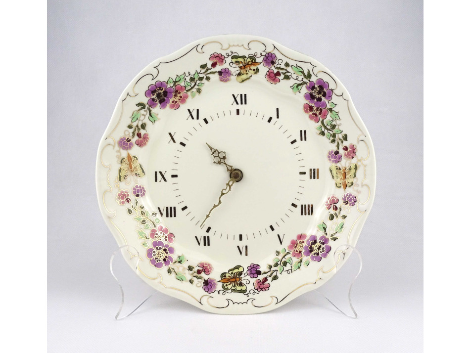 Régi vajszínű pillangós Zsolnay porcelán falióra