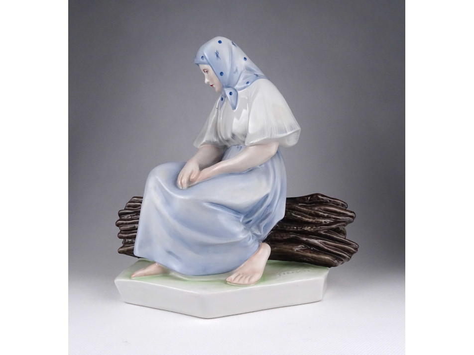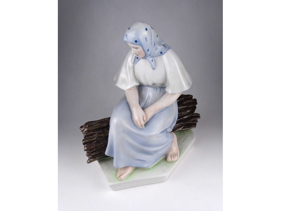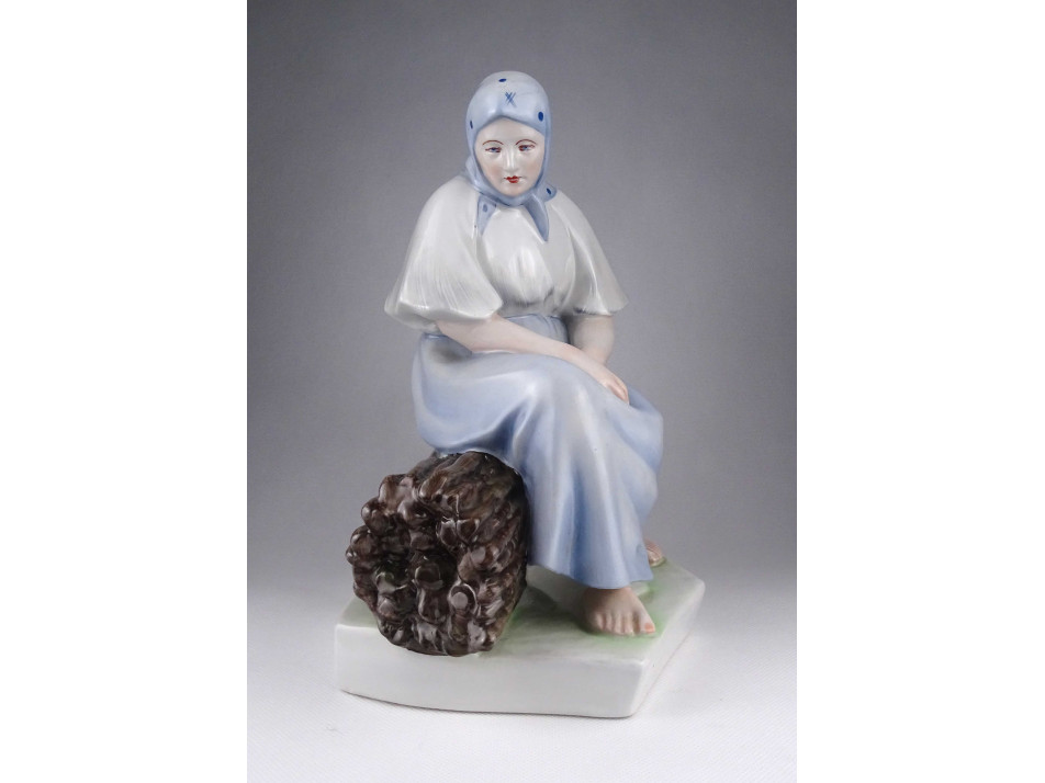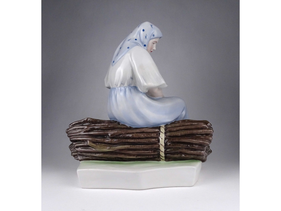 Nagyméretű Zsolnay Sinkó porcelán szobor - Rőzsén ülő asszony 26.5 cm