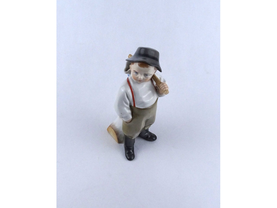 Régi, hibátlan állapotú, jelzett Zsolnay porcelán kalapos kisfiú figura.