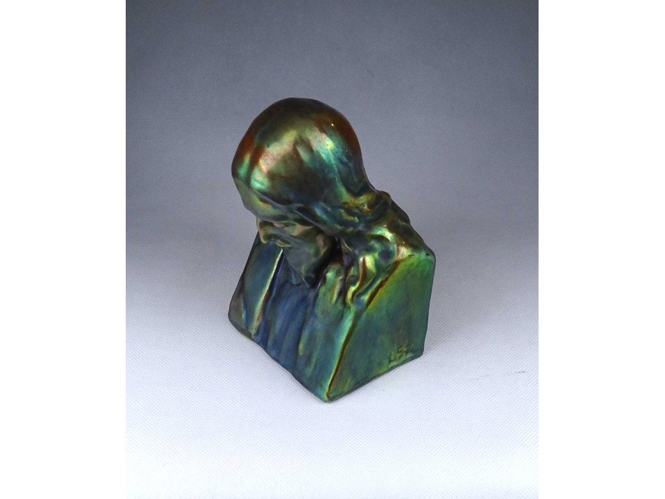 Antik eozin mázas Zsolnay Jézus büszt 17 cm