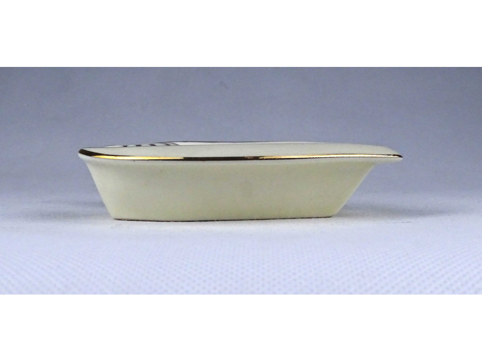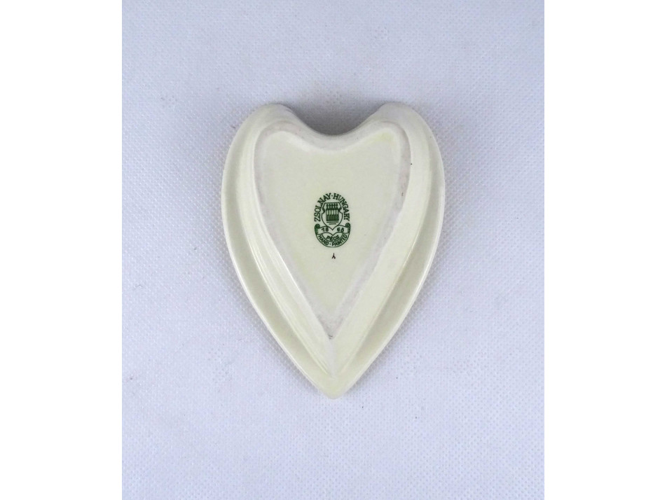 Hibátlan állapotú, jelzett, vajszínű, búzavirág mintás, gazdagon aranyozott, szív alakú Zsolnay porcelán hamutál.