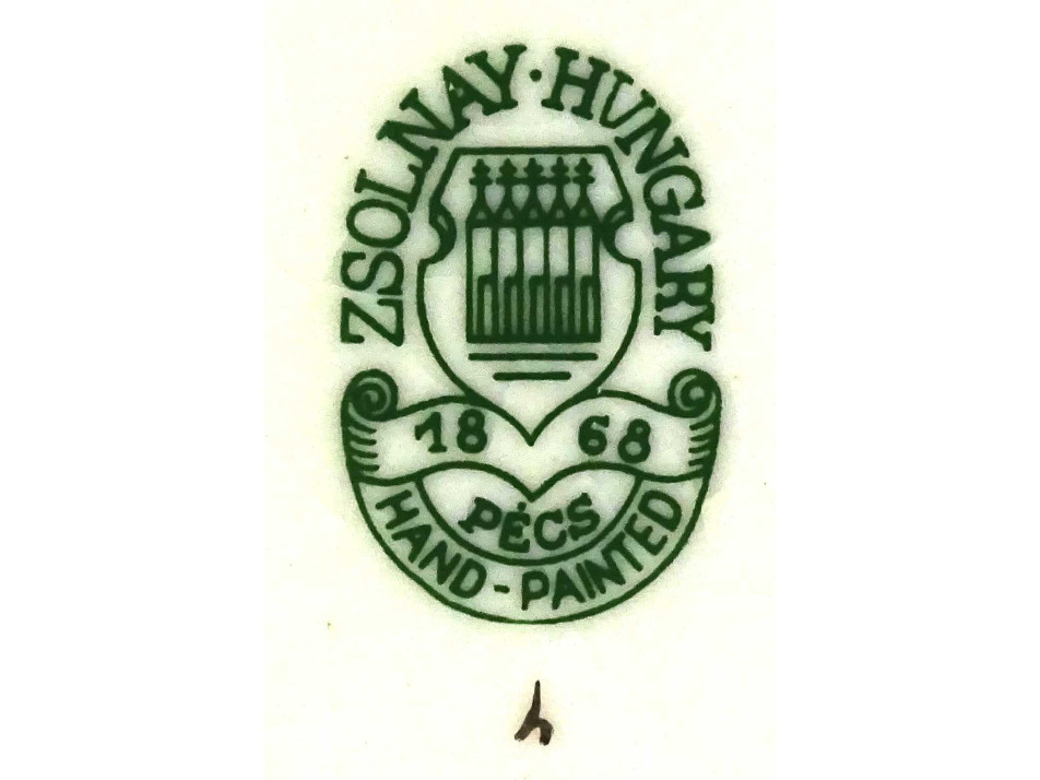 Alján zöld öttornyú Zsolnay márkajelzés: