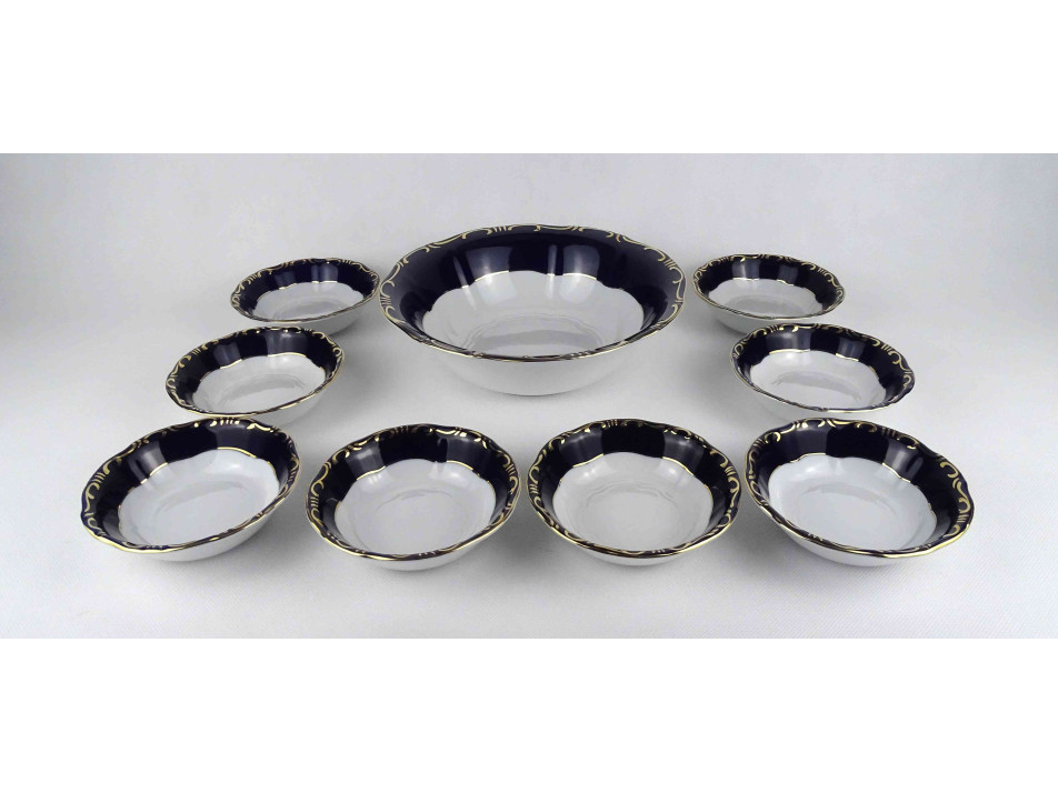 Hibátlan állapotú, Zsolnay porcelán Pompadour kompótos készlet gazdagon aranyozva, kobaltkék mázzal.
