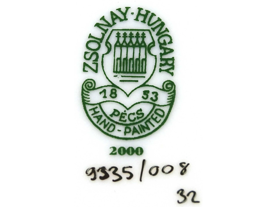 Alján zöld öttornyú Zsolnay márkajelzés: