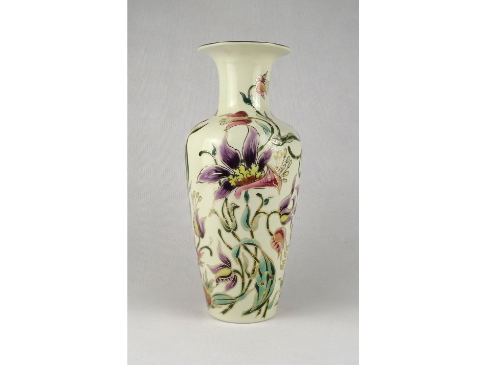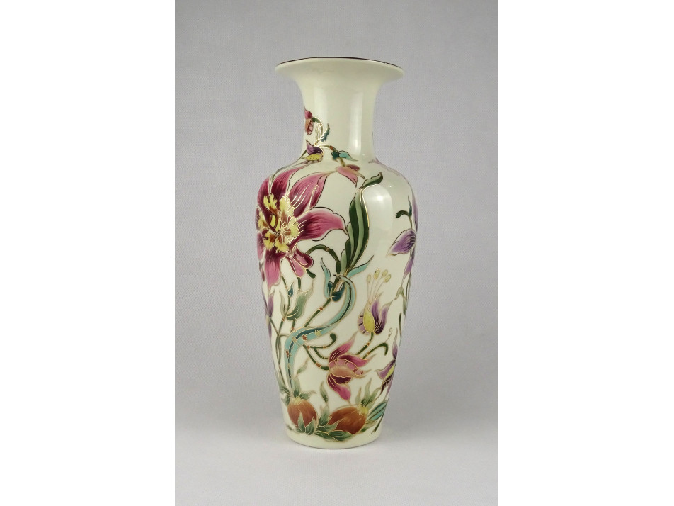 Orchideás vajszínű Zsolnay porcelán váza 26.7 cm