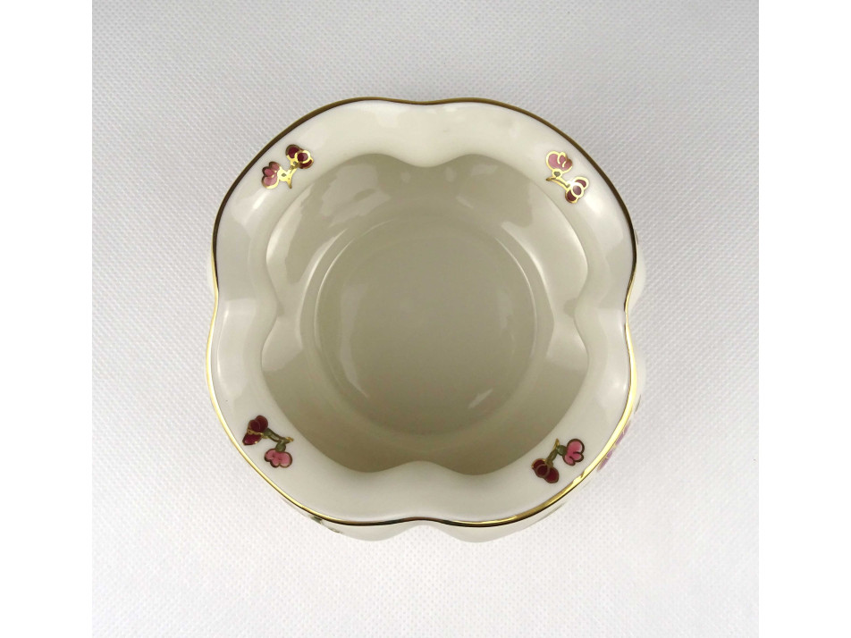 Hibátlan állapotú, gazdagon aranyozott, virágmintás, pillangós, öblös, gerezdes Zsolnay porcelán váza.