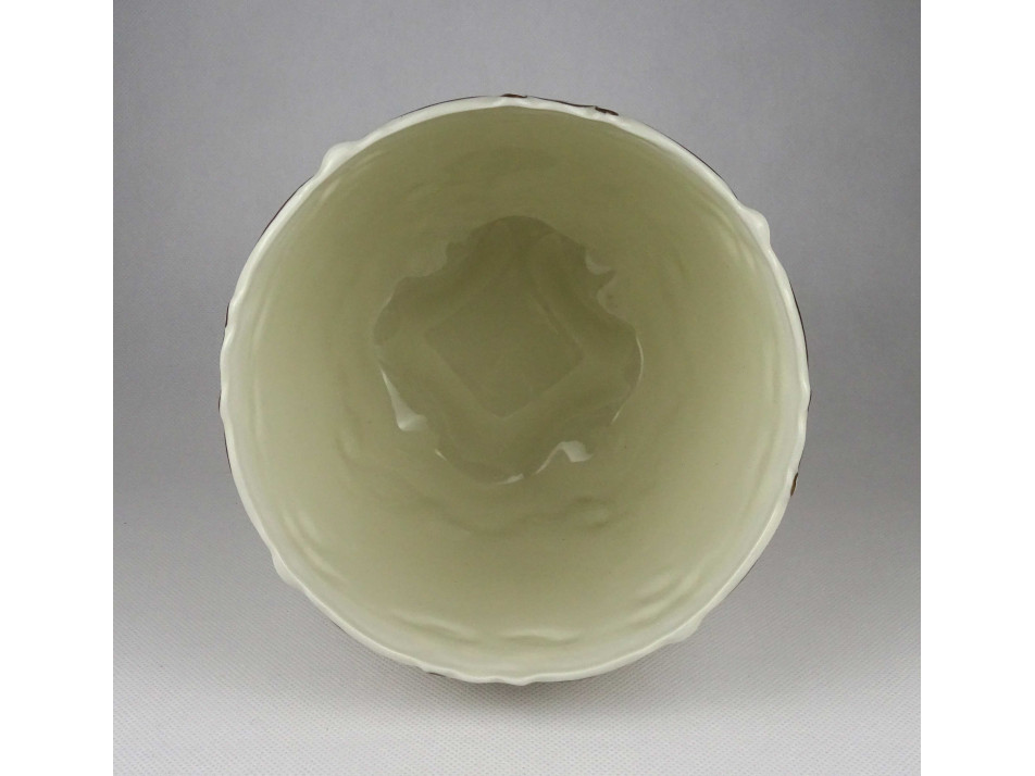 Nagyméretű orchidea mintás vajszínű Zsolnay lábas kaspó 18.5 cm