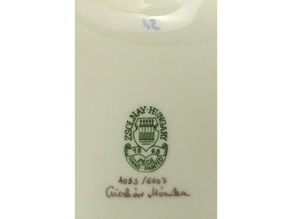 Alján zöld öttornyú Zsolnay márkajelzés: