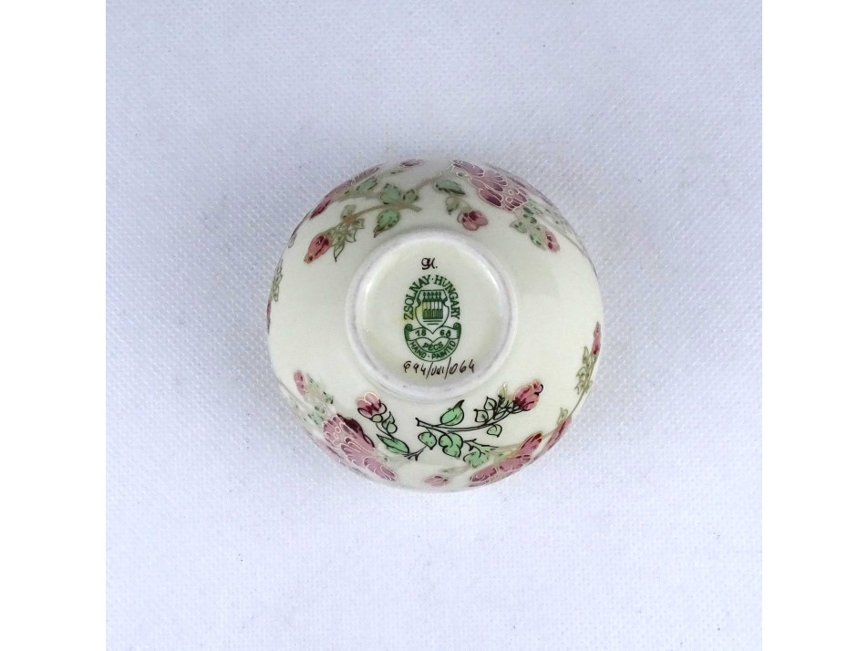 Régi vajszínű virágmintás Zsolnay porcelán kis váza