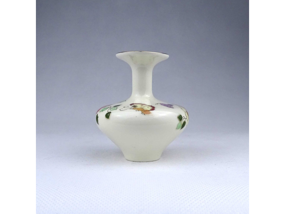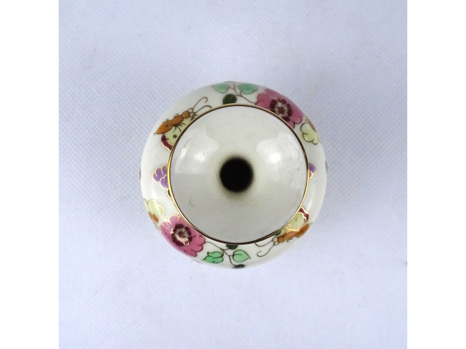 Vajszínű pillangó mintás Zsolnay porcelán váza díszváza 8 cm