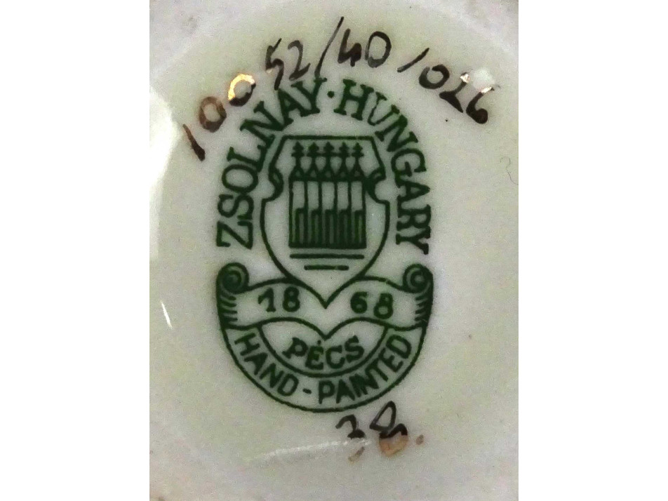Alján zöld öttornyú Zsolnay márkajelzés: