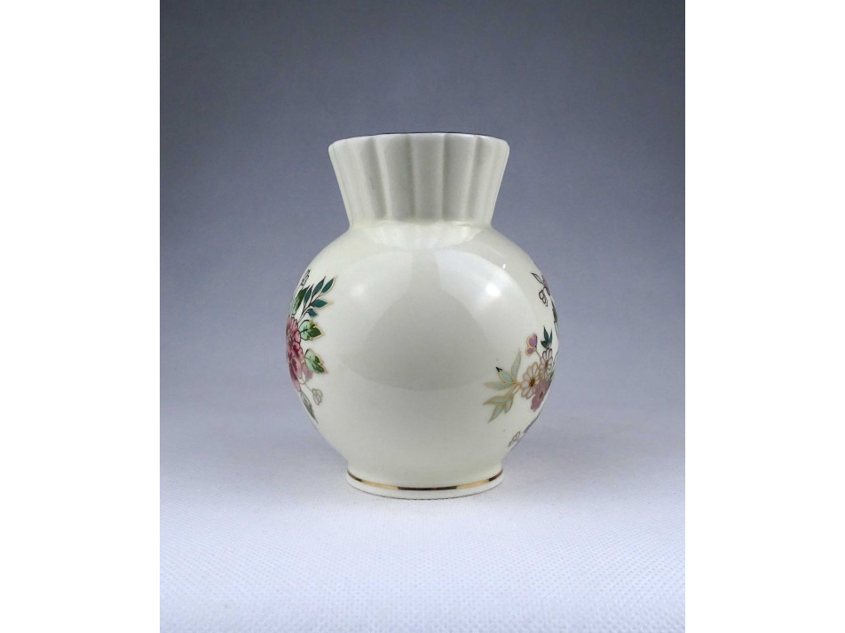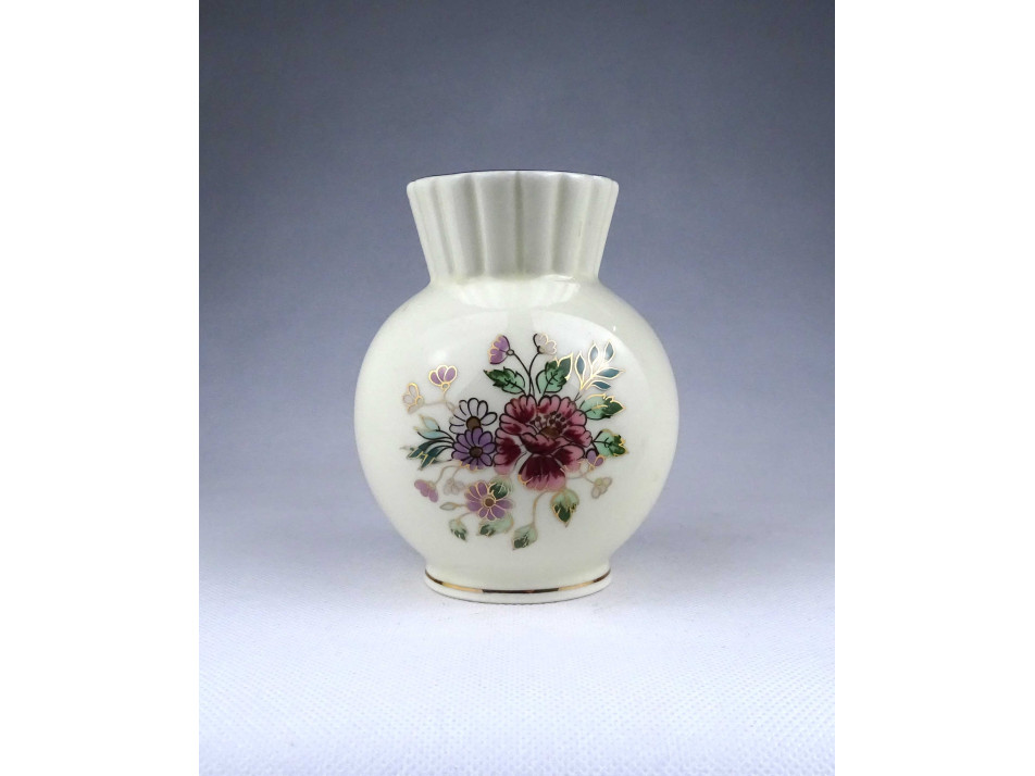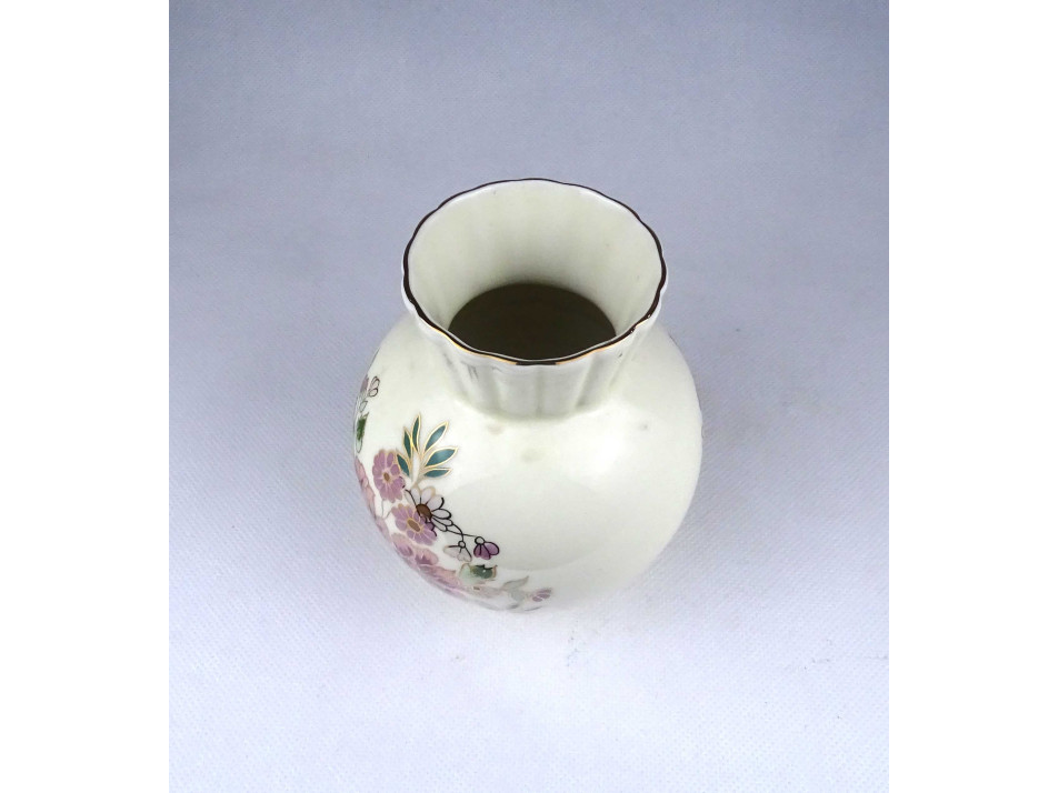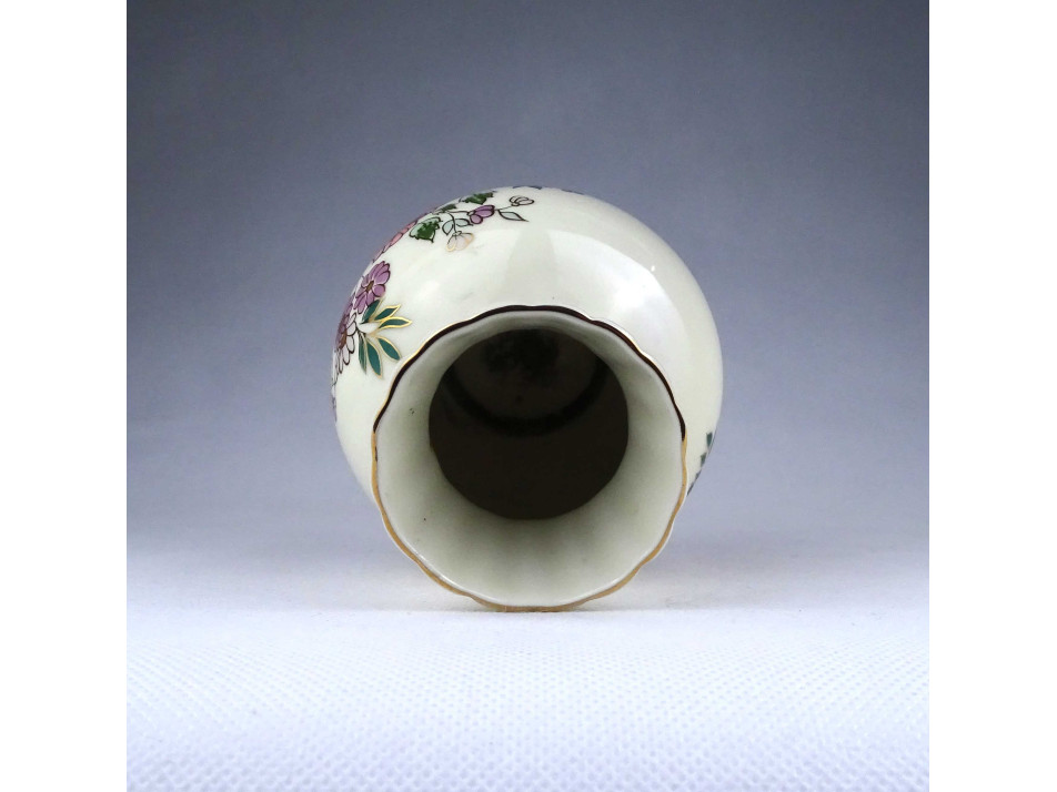 Régi vajszínű virágmintás Zsolnay porcelán váza 12.5 cm