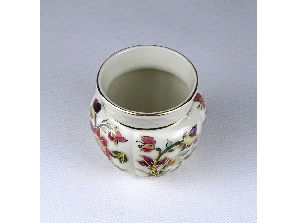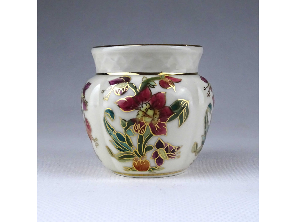 Vajszínű aranyozott orchidea mintás Zsolnay porcelán váza kis kaspó 6.7 cm