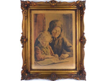 Régi Perlmutter Imre kisméretű népi életkép olaj festmény pár