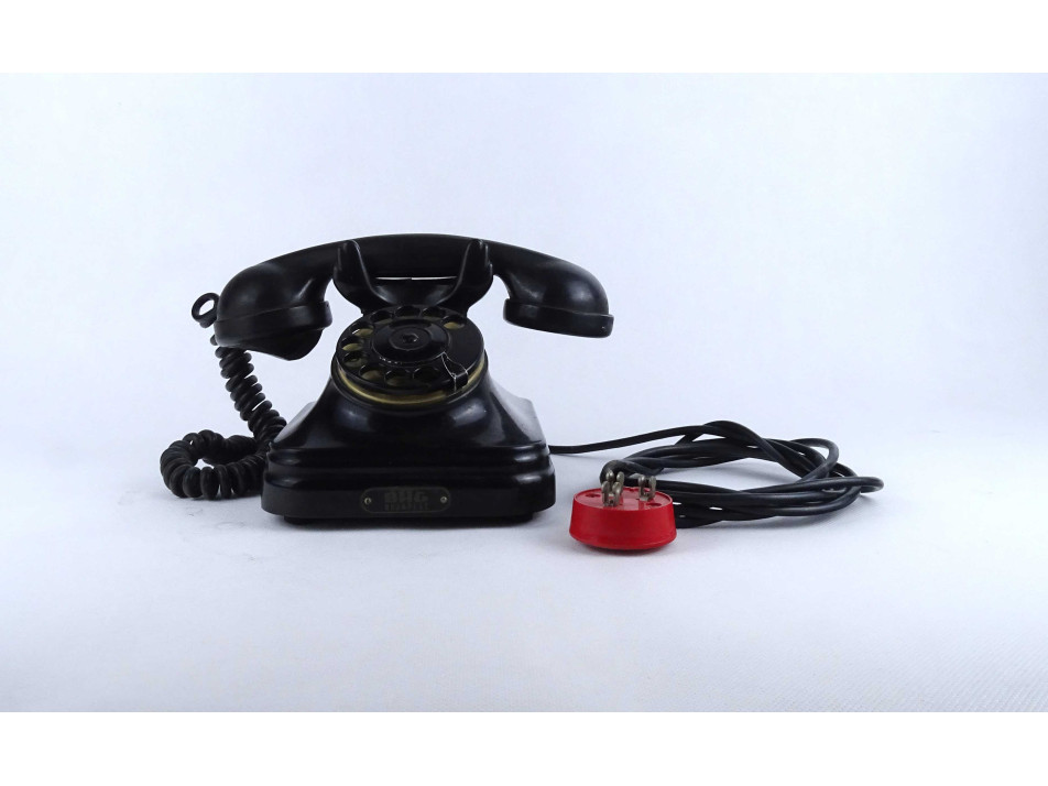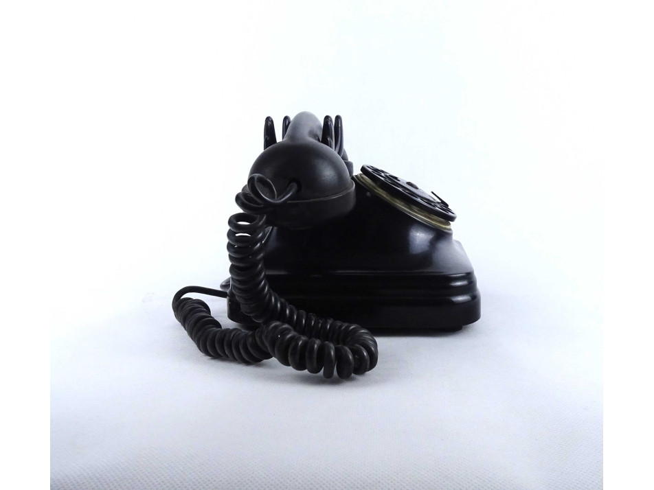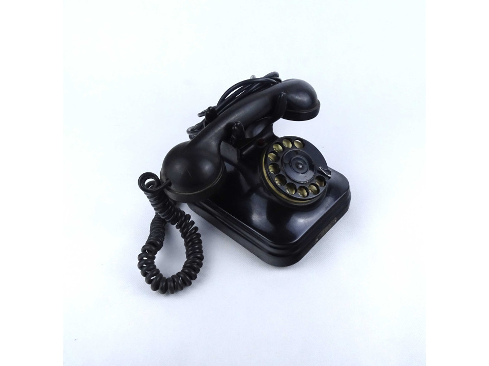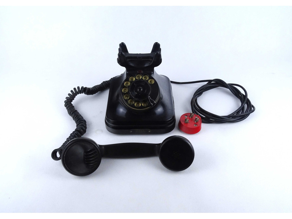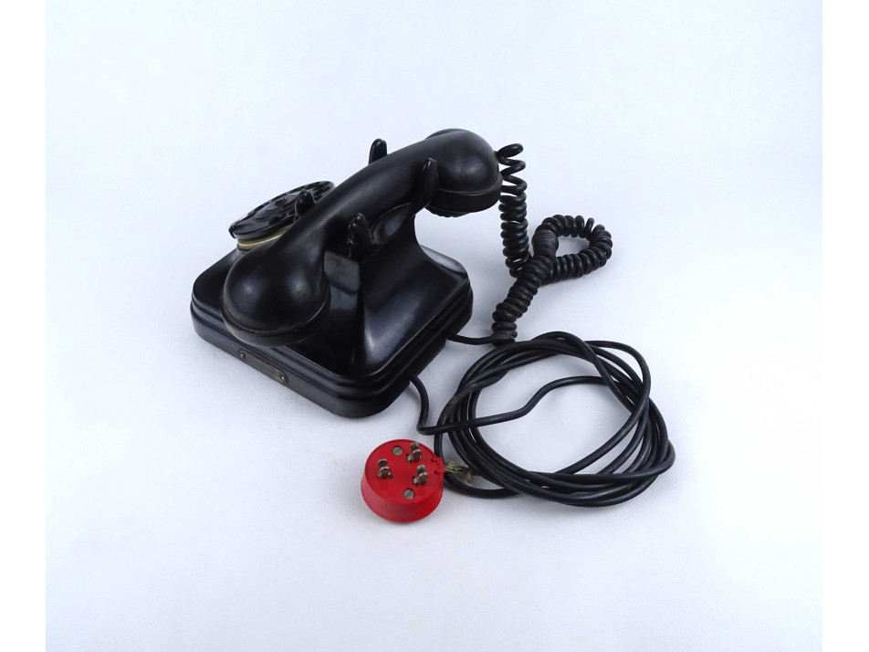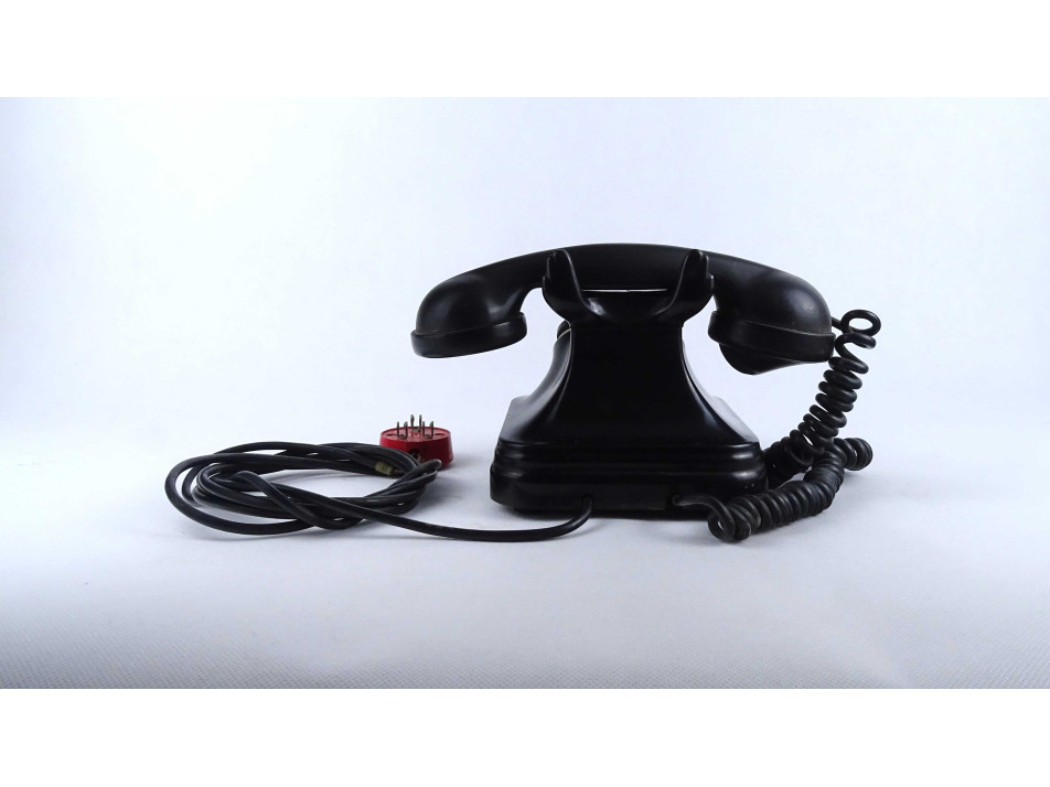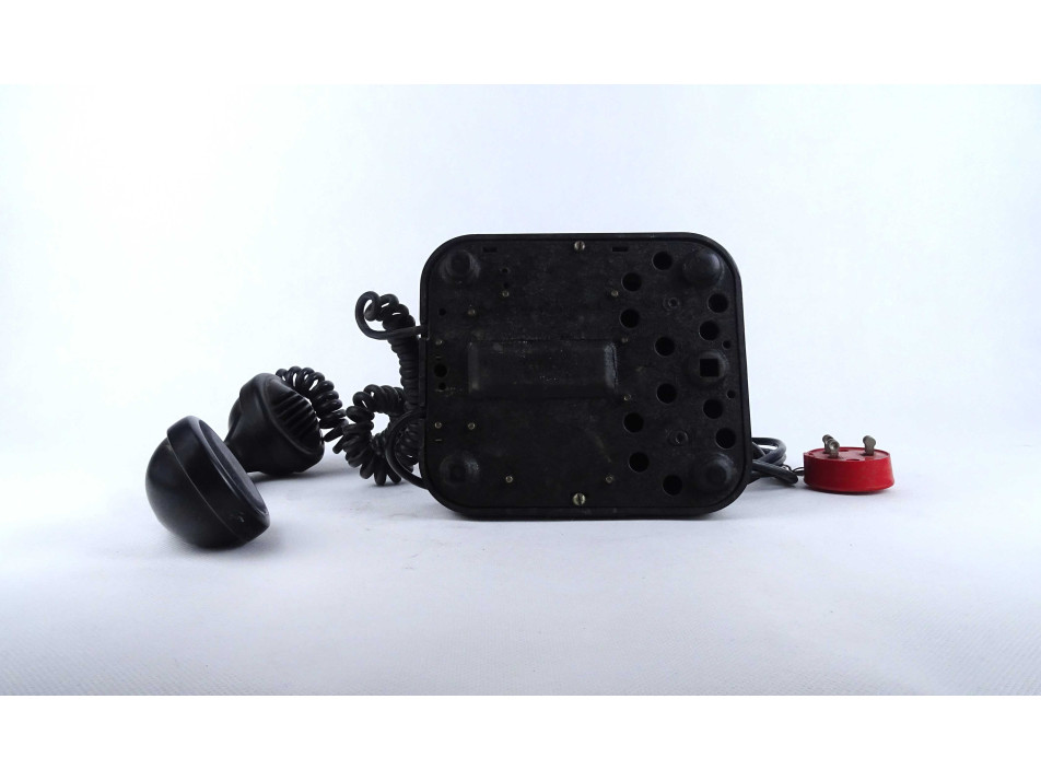 Antik, bakelitházas, bakelit tárcsás távbeszélő készülék, fotón látható állapotban. Ezt a készüléket a Magyar Posta 1935-1955-ig gyártotta, CB 35-ös néven (Central Battery - központi táplálás). Gyűjtői darab!