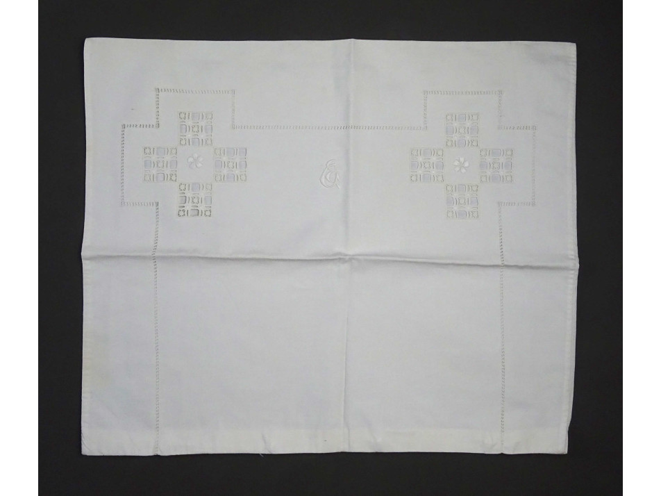 Régi, hibátlan, újszerű állapotú, horgolt pillangóval díszített, vékony fehér vászon párnahuzat garnitúra.