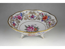 Virágcsokor mintás áttört szélű Hollóházi porcelán lábas dísztál 20 cm