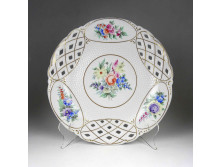 Virágcsokor mintás áttört szélű Hollóházi porcelán dísztál 30 cm
