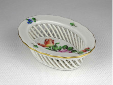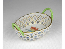 Régi virágmintás Herendi fonott kosár gyűrűtartó tálka