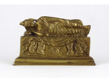 Antik 18. századi különleges alakú öntöttvas mozsár 9 cm
