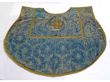Antik kék-arany színű gazdagon hímzett brokát miseruha papi palást