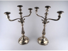 Antik, 800-as ezüst, nagyméretű, háromágú gyertyatartó asztali kandaláber pár 1374 g