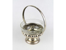 Antik csiszolt üvegbetétes ezüst kosár asztalközép 217 g