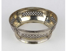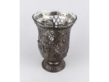 Antik üvegbetétes, áttört mintás, 800-as ezüst váza 586 g
