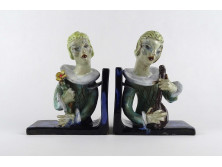 Régi Kargopoli orosz kerámia játék figura - hosszú copfos fiatal lány 14.7 cm