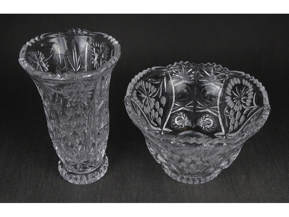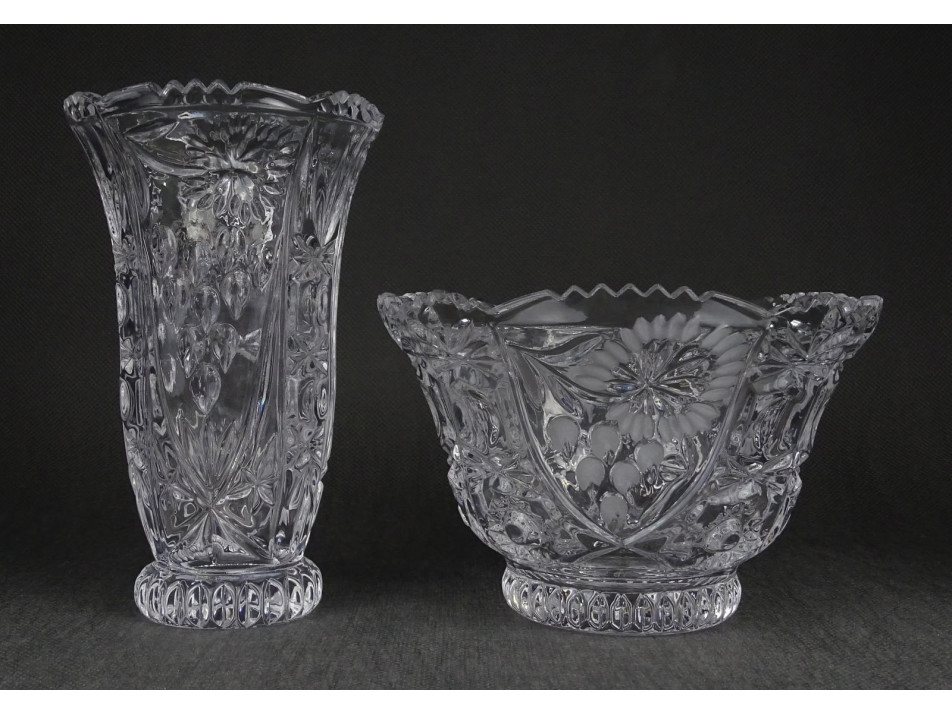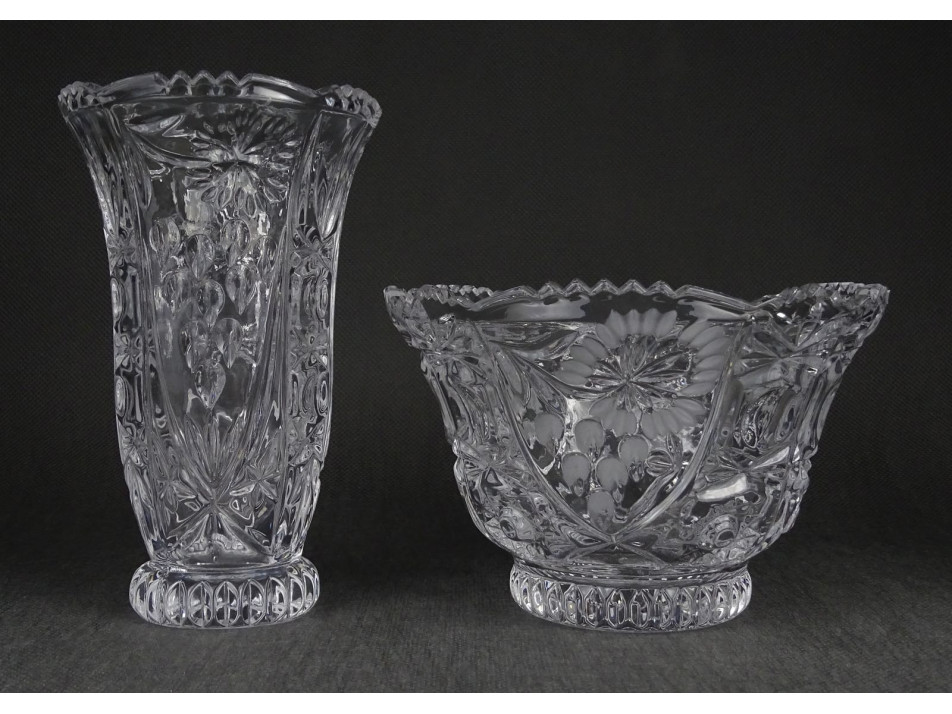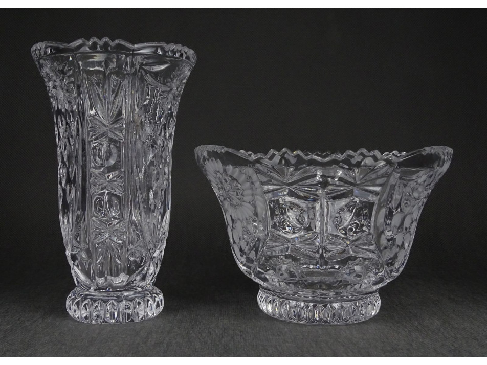 Vastagfalú gazdagon díszített, hibátlan állapotú üveg váza, kristály váza párban.